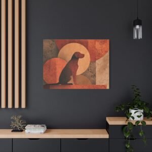 Découvrez notre Tableau Terracotta – Chien, une composition géométrique abstraite qui apporte une touche d’originalité et de modernité à votre décoration. Cette œuvre se distingue par son esthétique rustique terracotta, avec des formes superposées en terre cuite aux textures de surface argileuse. Les tons de terre de Sienne brûlée et d’orange chaud se marient harmonieusement, créant un effet visuel saisissant. Le profil d’un chien assis se dessine à travers des formes circulaires et angulaires, ajoutant une dimension animale à l’ensemble.