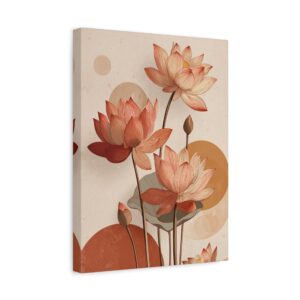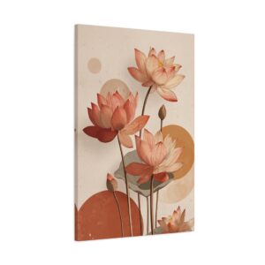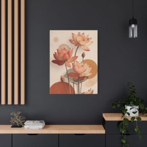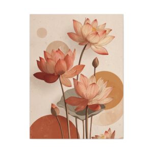 Découvrez le Tableau Terracotta – Lotus floral, une illustration délicate de fleurs de lotus aux tons terracotta minimalistes. Avec sa palette de couleurs terreuses chaudes, ce tableau offre une composition élégante et simple qui apporte une touche de sérénité à votre intérieur. Les couleurs douces d’orange et de beige créent une atmosphère apaisante et contemporaine.