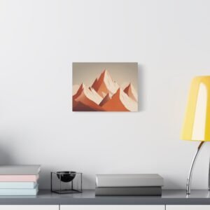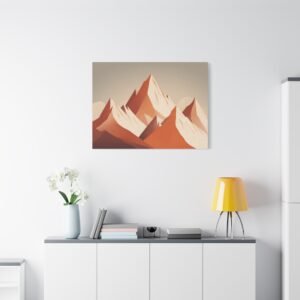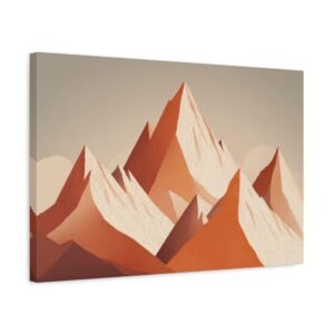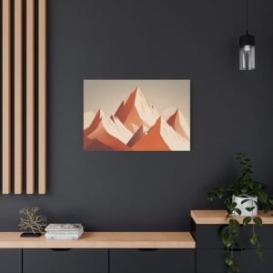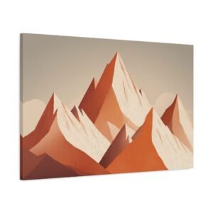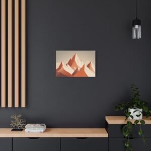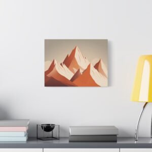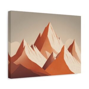 Tableau Terracotta – Montagne enneigée: Une illustration alpine minimaliste aux tons terracotta