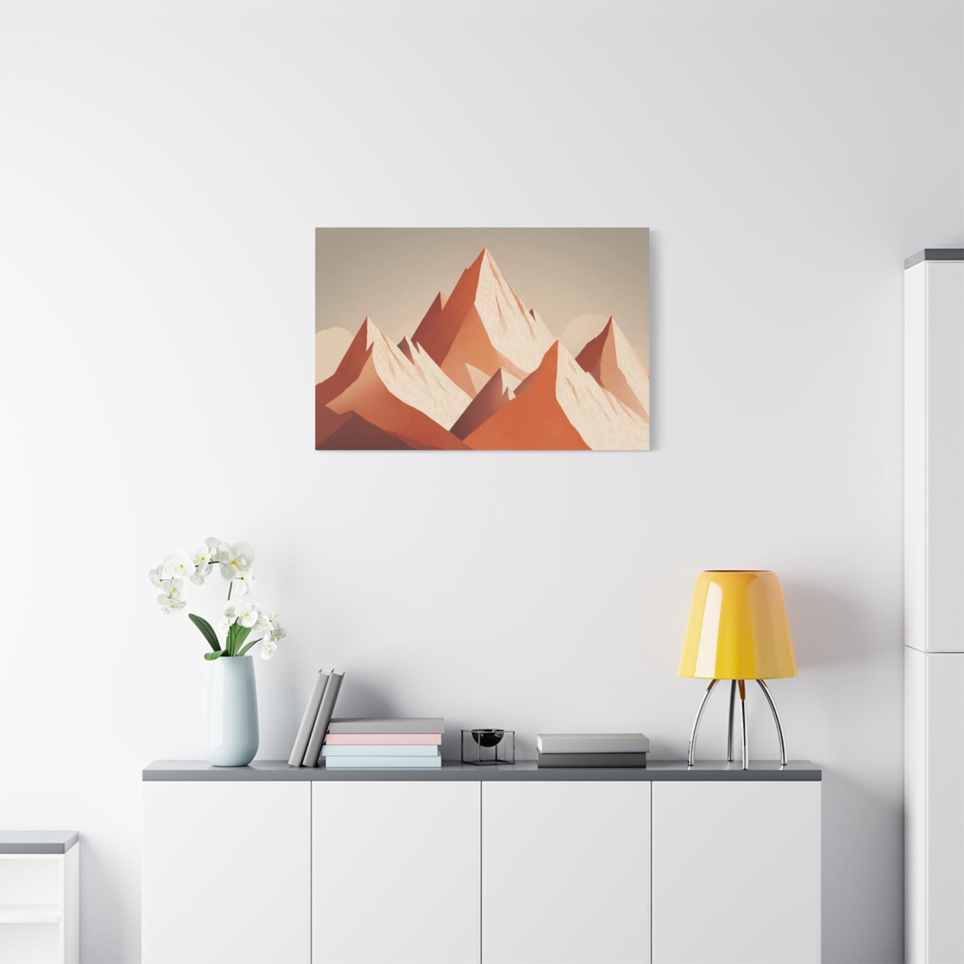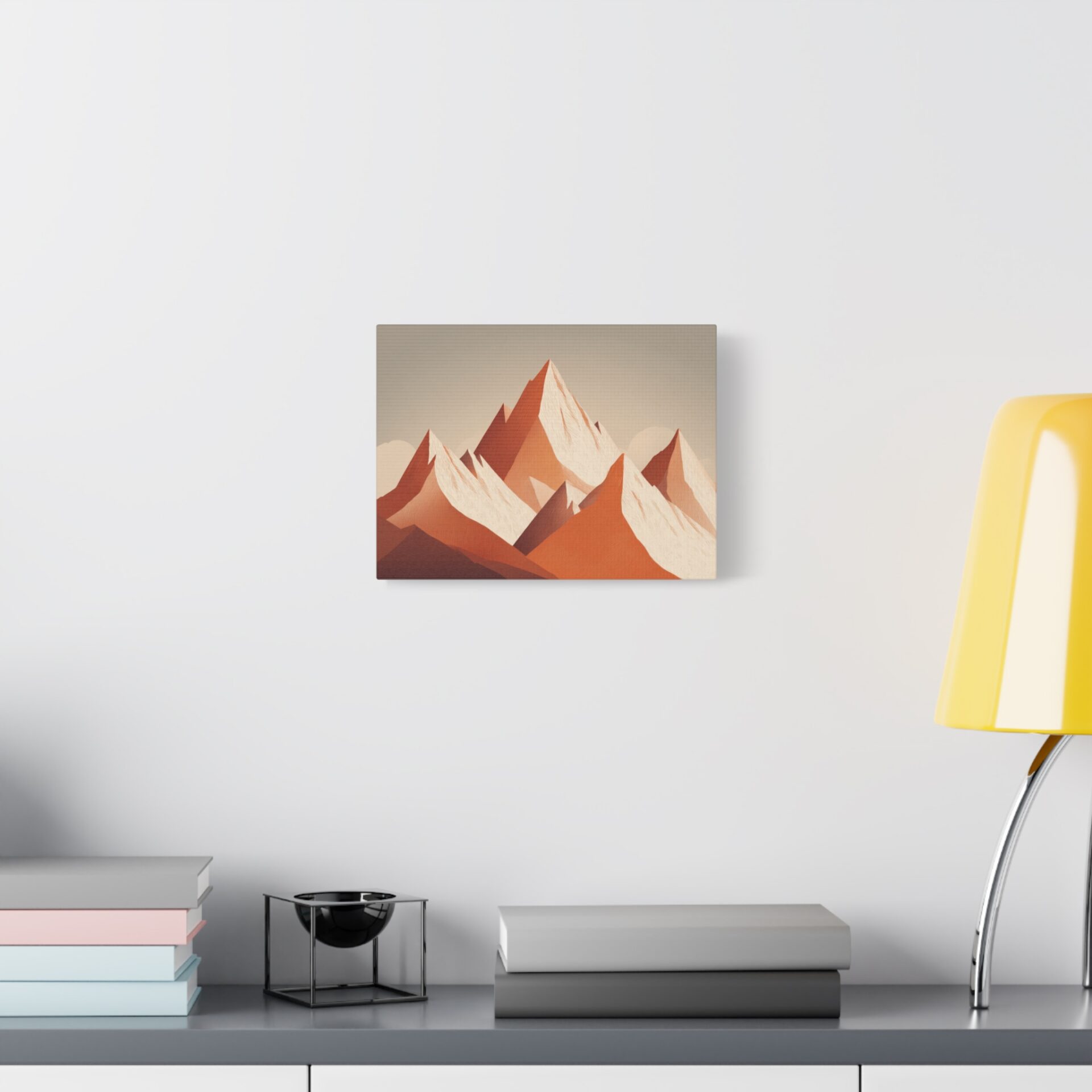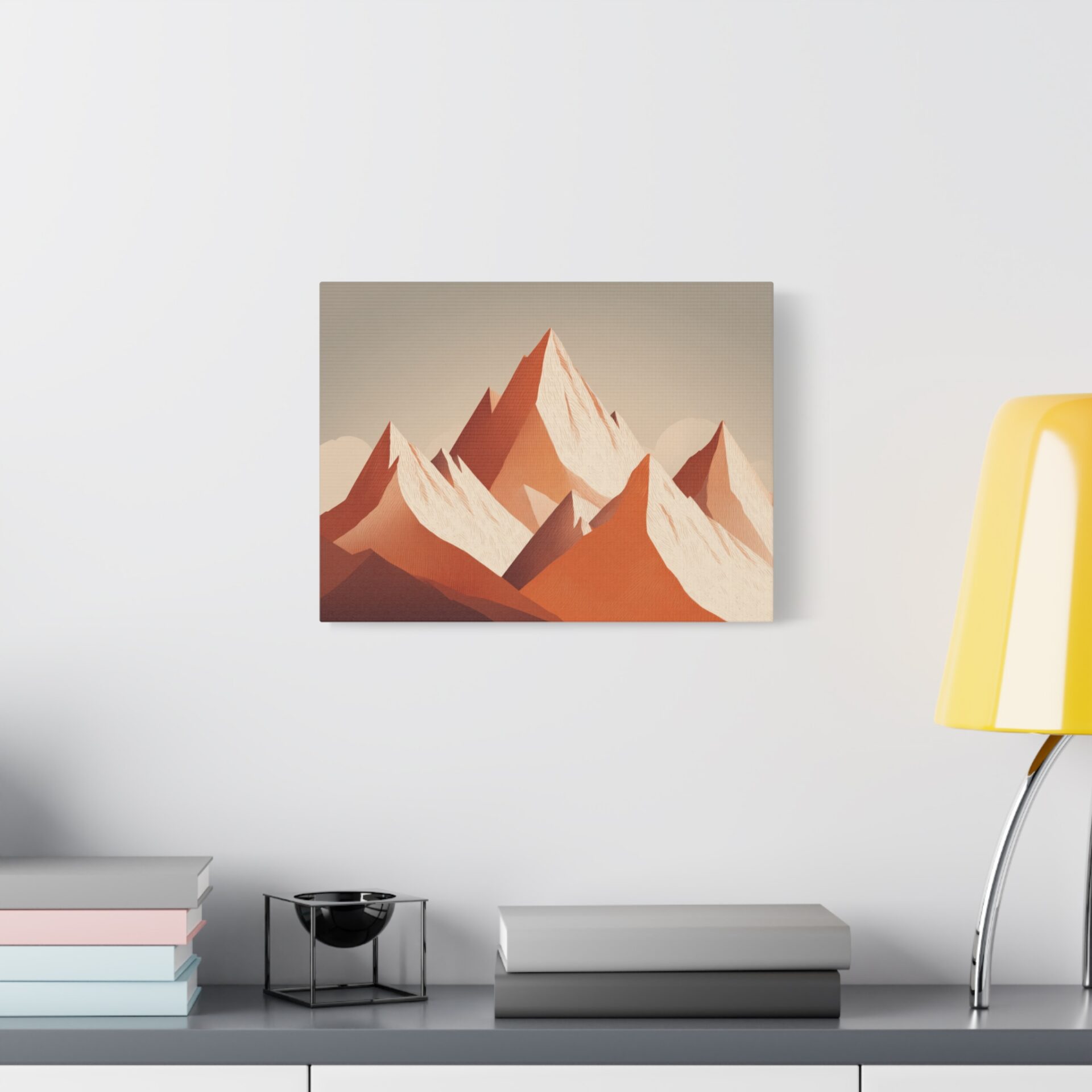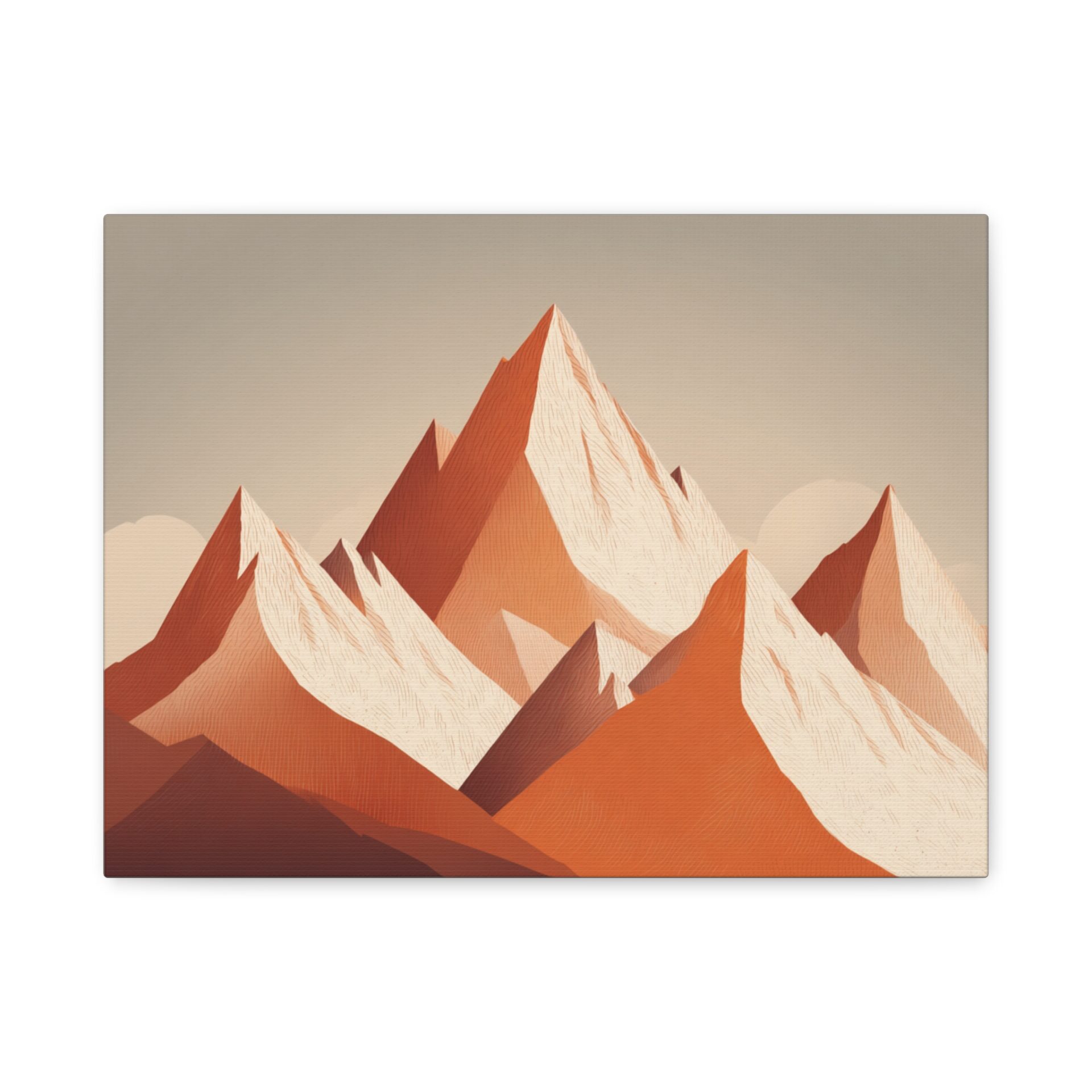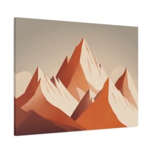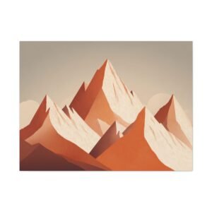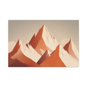 Découvrez notre Tableau Terracotta – Montagne enneigée. Une illustration alpine minimaliste qui met en scène une montagne enneigée aux formes géométriques. Les pics triangulaires abstraits se détachent sur un fond aux tons chauds et terreux d’orange et de blanc. Cette composition géométrique simple mais élégante est une véritable œuvre d’art contemporaine. Les couleurs terracotta, douces et apaisantes, apporteront une touche d’élégance et de simplicité à votre intérieur.