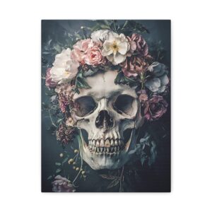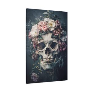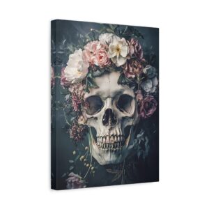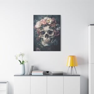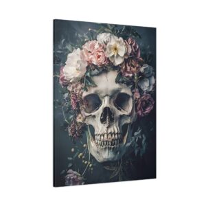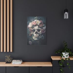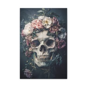Tableau Tête de Mort Fleur : Une Fusion Poétique entre Vanité et Nature