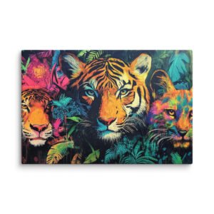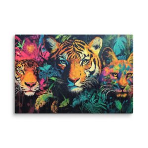 Prêt à faire entrer la jungle urbaine chez vous ? 🐯🎨 Notre tableau tigre en couleur est l’œuvre parfaite pour insuffler une dose de férocité artistique à votre décor ! Imaginez un majestueux tigre, peint dans un style éclatant, se détachant sur un fond vibrant de couleurs néon.
