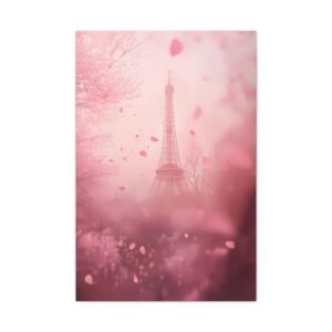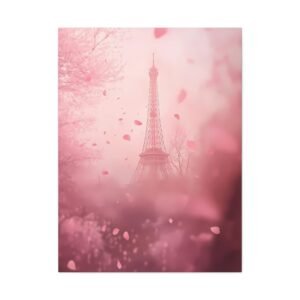 Laissez-vous transporter dans un Paris romantique où la Tour Eiffel se drape d’une délicate parure de cerisiers en fleurs. Cette composition unique marie l’iconique monument à la poésie des pétales roses flottant dans l’air, créant une atmosphère féerique digne des plus beaux rêves parisiens.