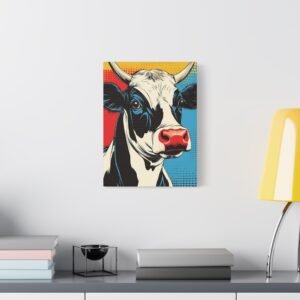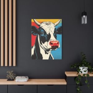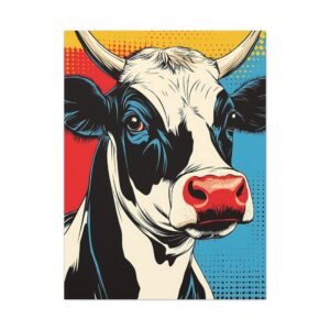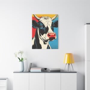 Plongez dans l’univers fascinant du Pop Art avec ce tableau unique mettant en scène une vache au style résolument moderne. Inspiré des œuvres emblématiques de Roy Lichtenstein, cette création audacieuse marie points Ben-Day et contours prononcés pour un résultat saisissant.