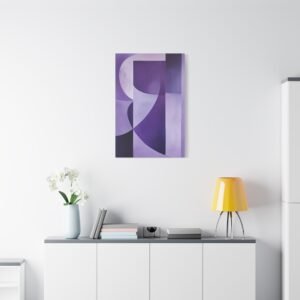 Laissez-vous séduire par cette composition abstraite minimaliste où les formes pourpres profondes dansent sur un fond lavande aérien. Les lignes géométriques et les courbes créent une harmonie visuelle captivante, parfaite pour insuffler une touche de sophistication à votre intérieur.