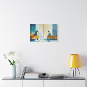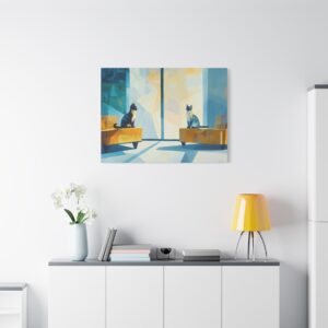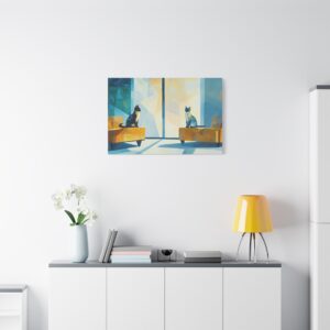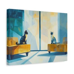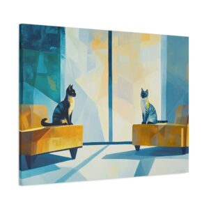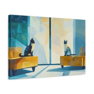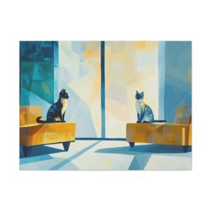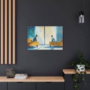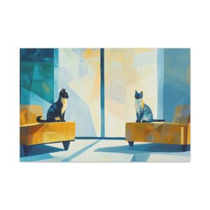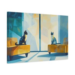 Laissez-vous séduire par cette création artistique enchanteresse qui marie avec délicatesse l’univers félin et l’art de l’aquarelle. Cette toile contemporaine capture l’essence même de nos compagnons à quatre pattes dans une explosion de couleurs vibrantes et de touches délicates.