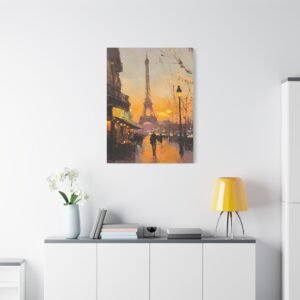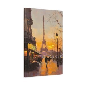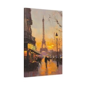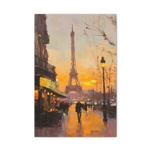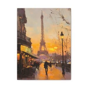 Plongez dans l’atmosphère romantique de Paris avec cette peinture à l’huile majestueuse de la Tour Eiffel. Les rayons dorés du soleil couchant caressent l’emblématique monument, tandis que les coups de pinceau délicats créent une ambiance impressionniste envoûtante.