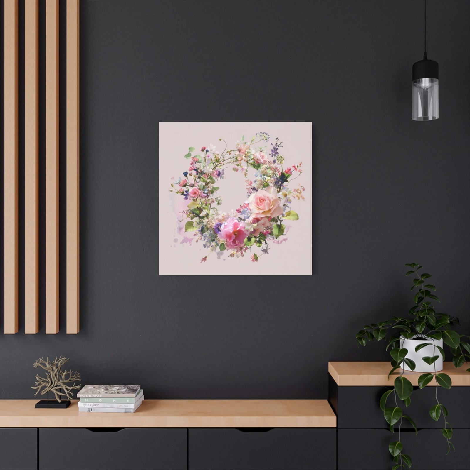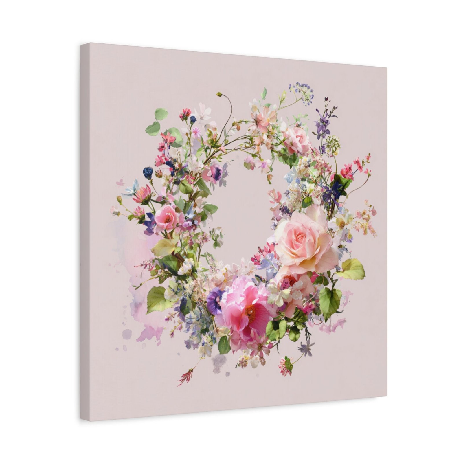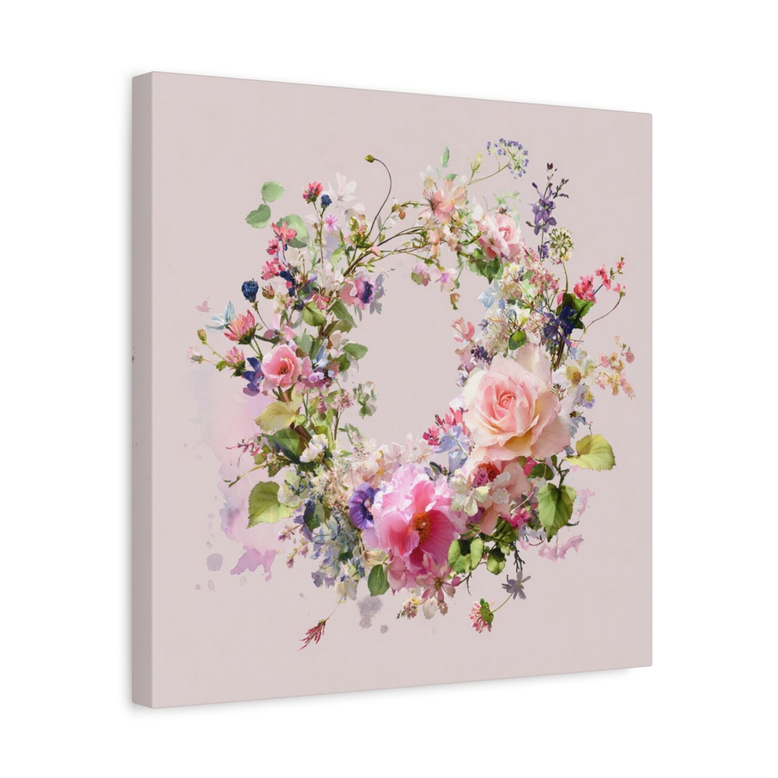 Tableau Aquarelle Couronne de Fleurs: Un arrangement floral délicat aux couleurs pastel