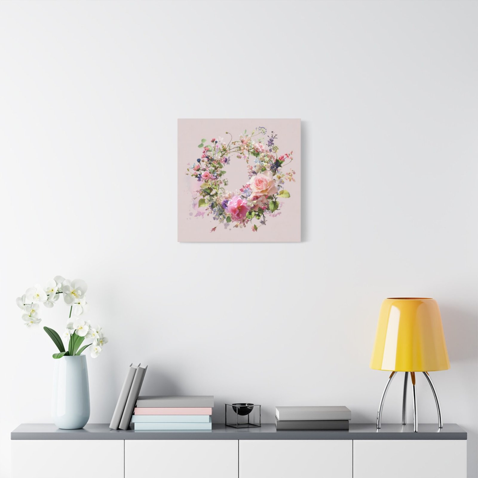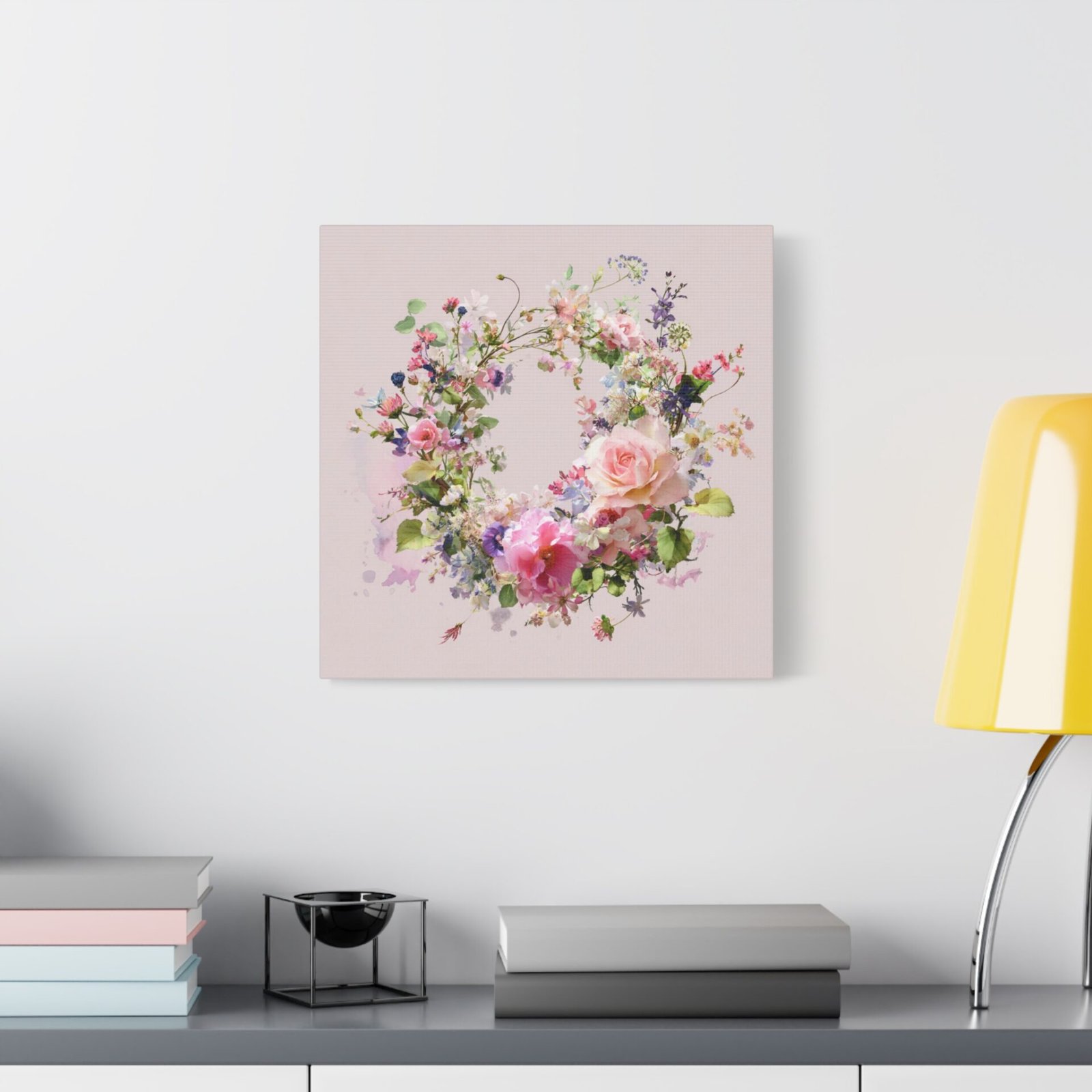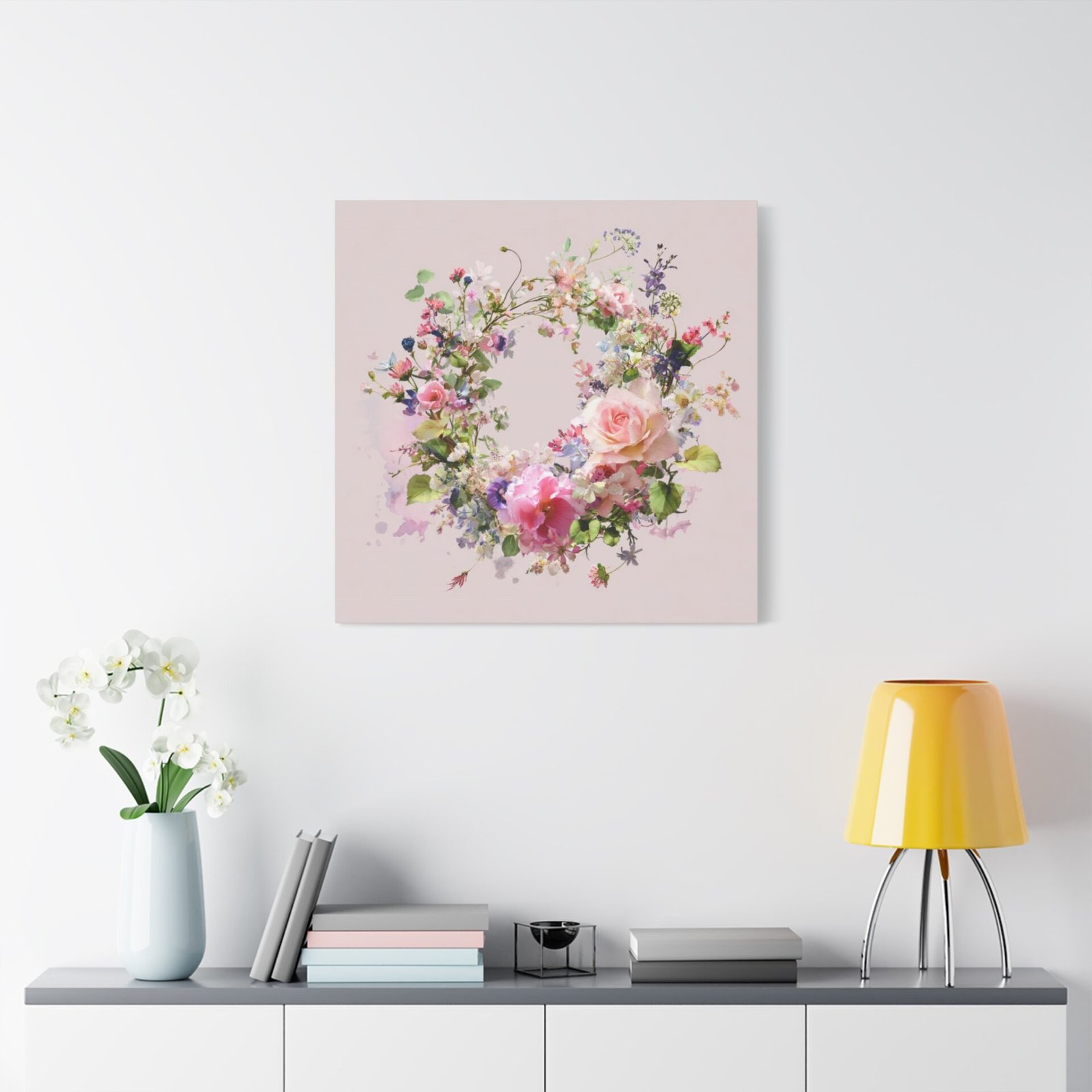 Tableau Aquarelle Couronne de Fleurs: Un arrangement floral délicat aux couleurs pastel