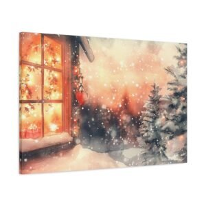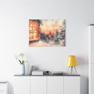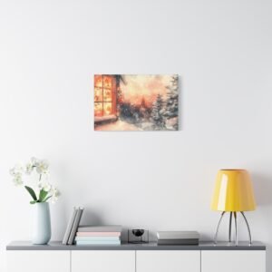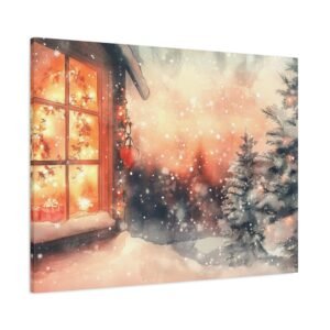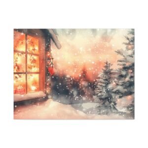 Plongez dans l’atmosphère chaleureuse d’une soirée de Noël scandinave avec cette aquarelle évocatrice. Les fenêtres illuminées du cottage enneigé diffusent une lueur réconfortante qui invite à la contemplation, tandis que les flocons de neige dansent délicatement dans l’air hivernal.