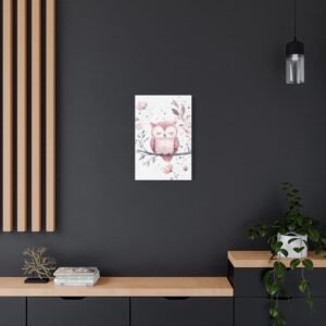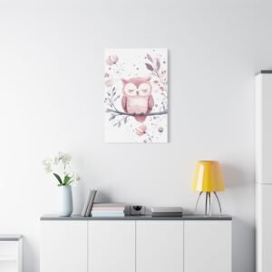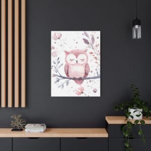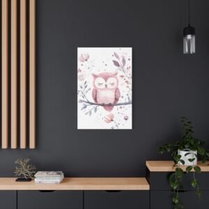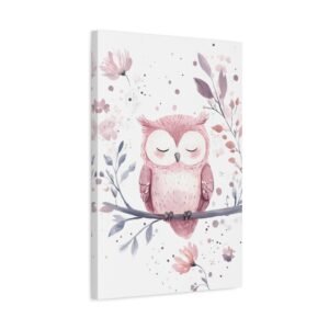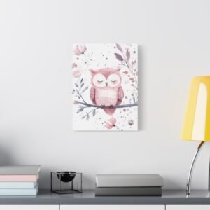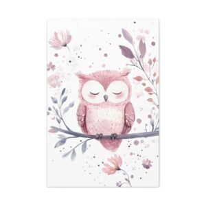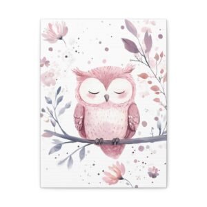 Offrez un univers enchanteur à votre petite princesse avec ce tableau pour chambre de bébé adorable. Le petit hibou endormi, tendrement illustré dans des tons roses et lilas, apporte une touche de douceur paisible. Les délicates fleurs et les taches pastel subtiles créent une atmosphère apaisante parfaite pour accompagner les doux rêves de votre bébé.