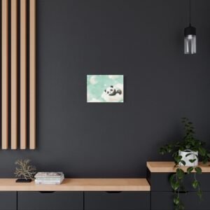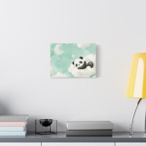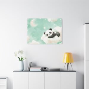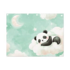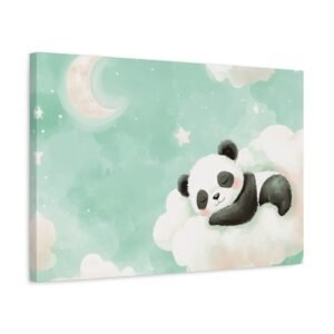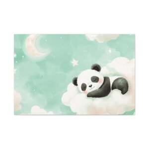 Plongez dans un univers enchanteur avec ce tableau panda pour chambre de bébé. Cette création artistique unique capture toute la tendresse d’un adorable bébé panda assoupi sur son nuage, dans une palette de couleurs douces et apaisantes. Les tons pastels, mêlant délicatement le rose poudré et le vert menthe, créent une atmosphère sereine parfaite pour le sommeil de votre tout-petit.