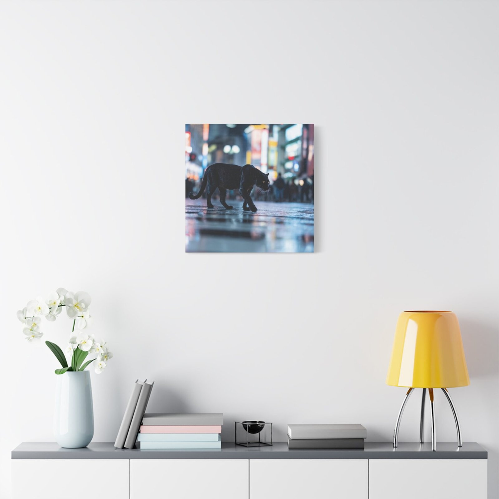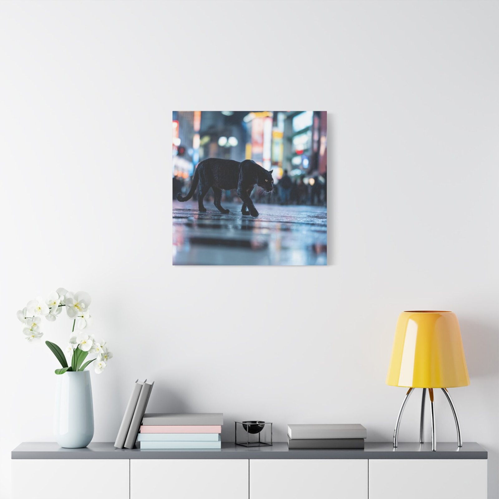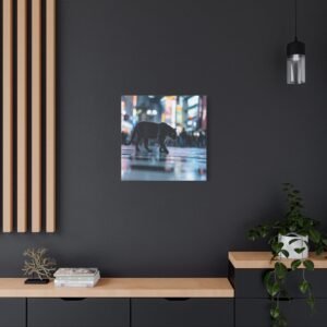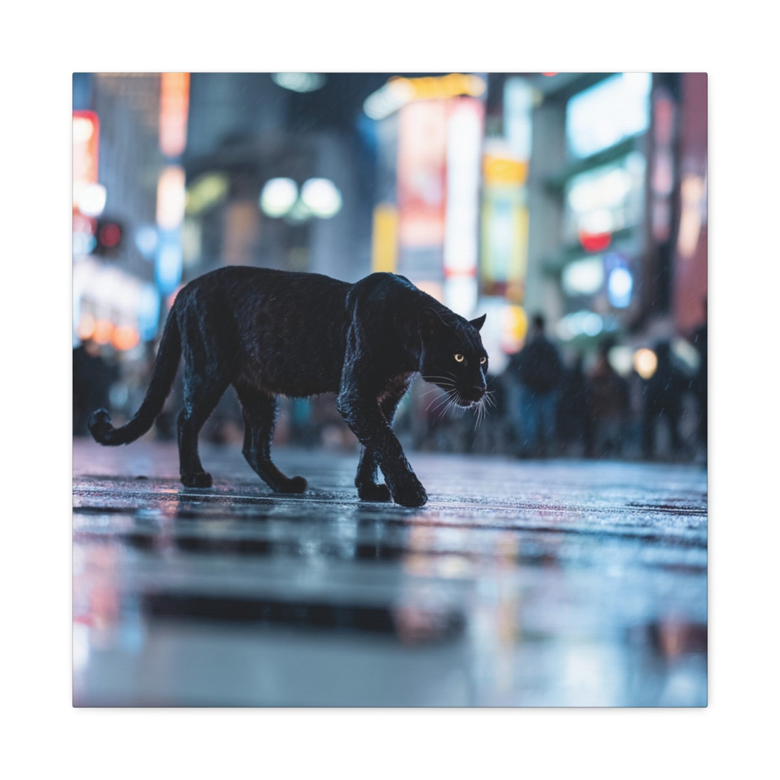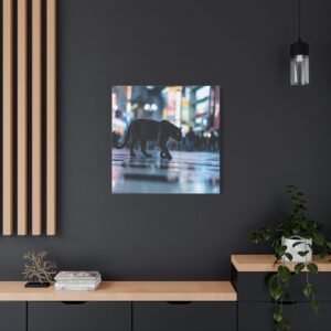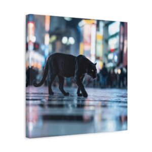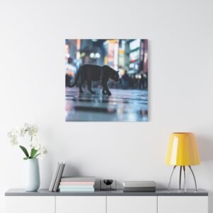 Découvrez un spectacle sauvage et urbain avec notre Tableau Panthère – Traverse un Passage Clouté. Cette œuvre saisissante capture une panthère noire traversant avec grâce les zébrures d’un passage piéton à Shibuya, le carrefour le plus fréquenté du monde. Les lumières néon et les reflets sur le pavé mouillé créent une atmosphère vibrante et métropolitaine. Le contraste dramatique entre la férocité de la faune et le chaos de la ville offre une photographie de rue cinématographique.