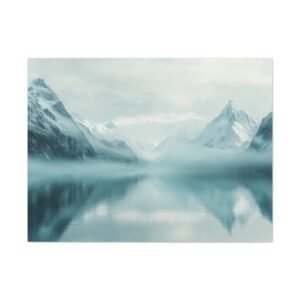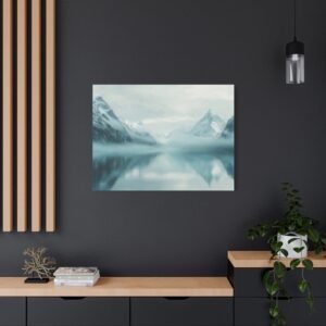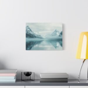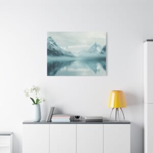 La palette de couleurs épurée, dominée par des tons bleutés et blancs, s’harmonise parfaitement avec une décoration contemporaine ou naturelle. L’ambiance brumeuse et la composition minimaliste insufflent une sérénité unique à votre espace de vie.