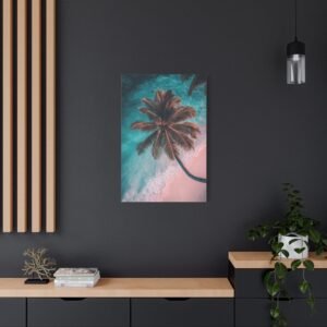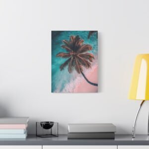 Transportez-vous instantanément vers un paradis tropical avec cette œuvre photographique saisissante. Le majestueux cocotier se balance au-dessus d’une eau turquoise cristalline, créant une atmosphère d’évasion absolue dans votre intérieur.