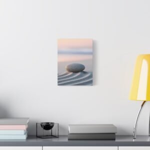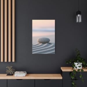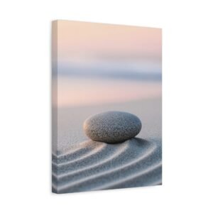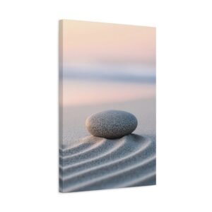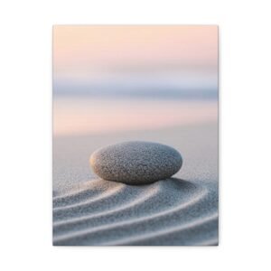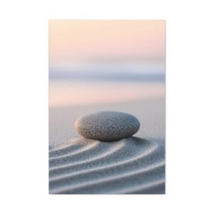 Plongez dans une atmosphère de sérénité absolue avec ce tableau plage zen minimaliste. Cette œuvre méditative capture la magie de l’aube sur le rivage, où les motifs du sable, inspirés des jardins zen japonais, s’entrelacent avec délicatesse.