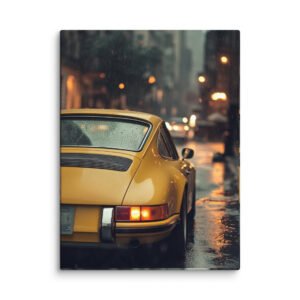 Plongez dans l’univers fascinant de l’automobile de luxe avec ce tableau Porsche 911 vintage qui capture toute l’essence d’une légende 🚗. Cette œuvre saisit un moment unique : une magnifique Porsche jaune vue de l’arrière, ses courbes iconiques sublimées par la pluie dans une ambiance urbaine envoûtante.
