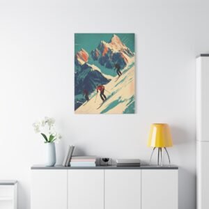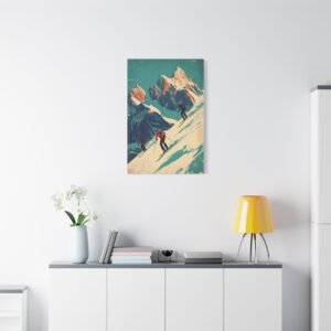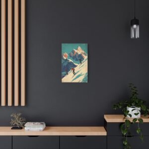 Les formes géométriques épurées et les aplats de couleurs audacieux insufflent une énergie remarquable à cette scène hivernale. La texture façon sérigraphie et la finition mate apportent une authenticité vintage qui sublimera votre intérieur.