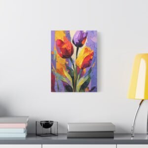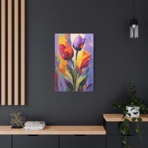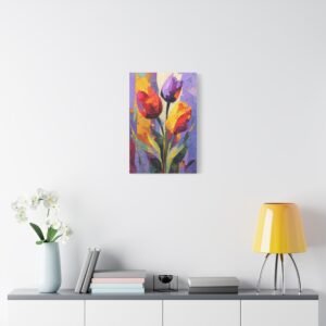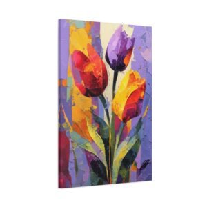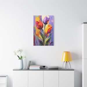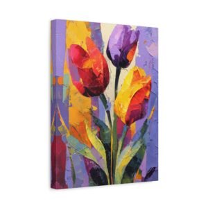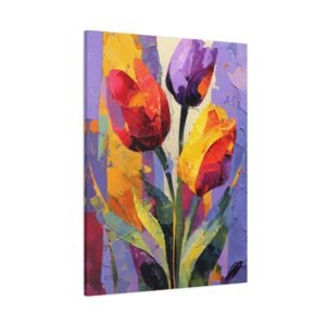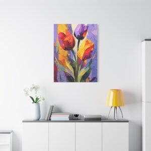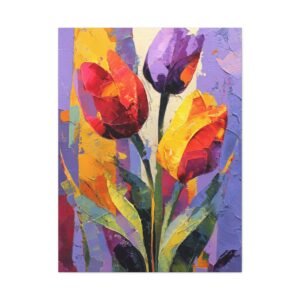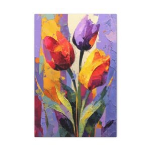 Plongez dans l’univers de l’expressionnisme abstrait avec ce Tableau Tulipes Abstrait. Les tulipes sont déconstruites en formes géométriques fluides et blocs de couleurs audacieux. Les rouges, oranges et jaunes vibrants fusionnent avec les pourpres profonds et les verts, créant un tableau riche et passionné. Les pinceaux dynamiques et les éclaboussures de peinture apportent mouvement et énergie à la toile, tandis que les formes fragmentées inspirées du cubisme suggèrent des silhouettes de tulipes. La toile texturée avec des couches de peinture acrylique offre une intensité émotionnelle et une interprétation artistique qui captiveront tous les regards.